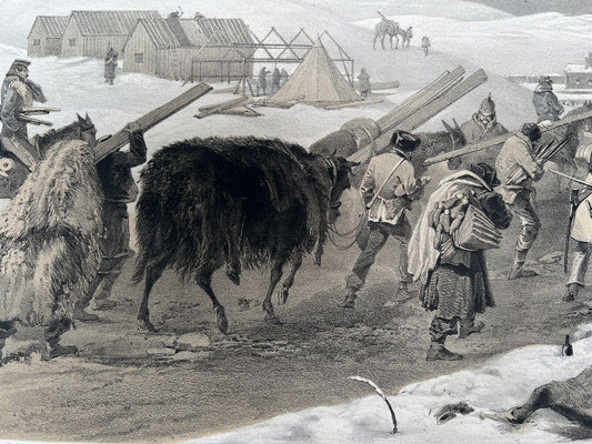 1855 VICTORIAN PRINT COLNAGHI WILLIAM SIMPSON "HUTS AND WARM CLOTHING" CRIMEAN