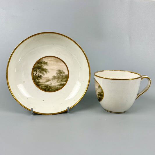18thc Derby cup & saucer in pattern number 409. Derbyshire views by Billingsley.