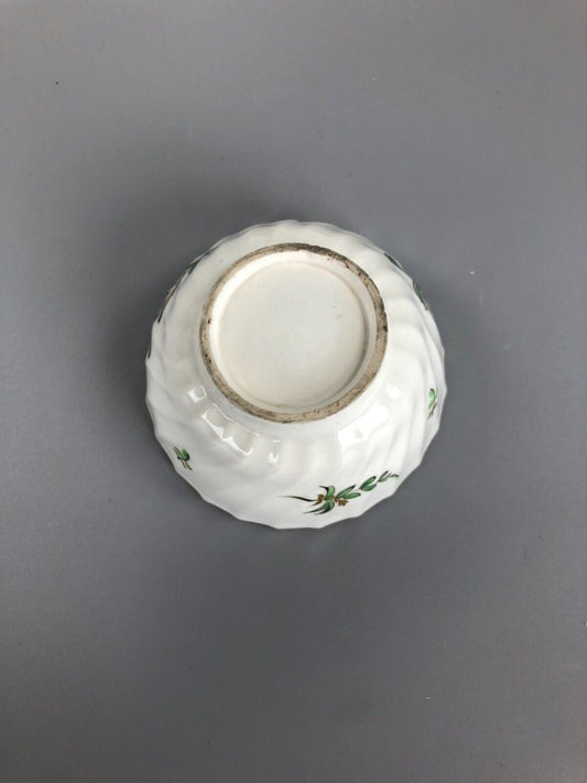 18thc. Flight Barr wrythen moulded tea bowl & saucer. Green leaf & acorn decor.